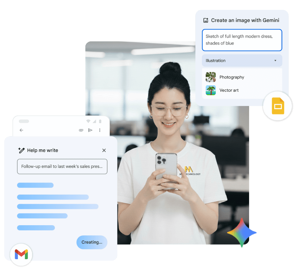 AI được tích hợp trực tiếp trong email, tài liệu và bảng dữ liệu, giúp nhân viên viết nhanh hơn, tổng hợp thông tin và xử lý công việc hiệu quả hơn, năng suất cao hơn.